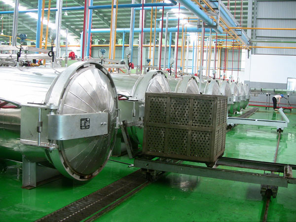 3、電腦程控全自動 ,恒溫、恒壓,回轉式,噴淋風扇內(nèi)循環(huán)等系列臥式殺菌鍋。